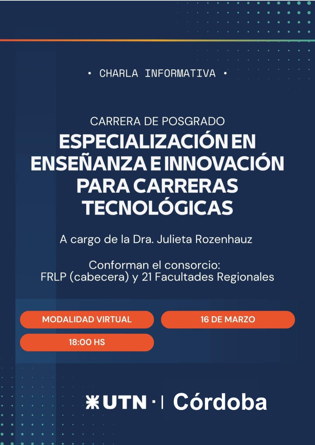 | Especialización en Enseñanza e Innovación para Carreras Tecnológicas Maestro M. Lopez esq. Cruz Roja Argentina - Ciudad Universitaria |